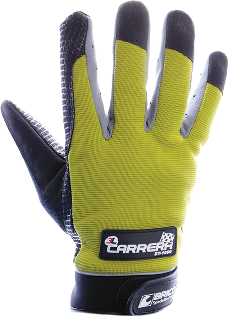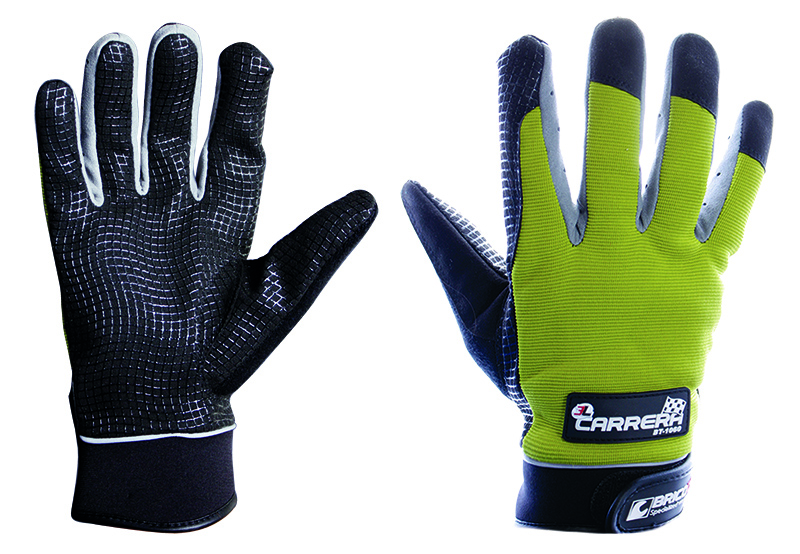 Guante de cuero sintético en la palma con trama de cuadros de silicona, dorso de spandex, banda de ajuste del puño con velcro