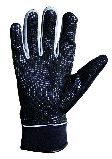 Banda de ajuste del puño de neopreno con velcro y ribete reflectante. Tejido absorbente en el dedo pulgar para secar el sudor