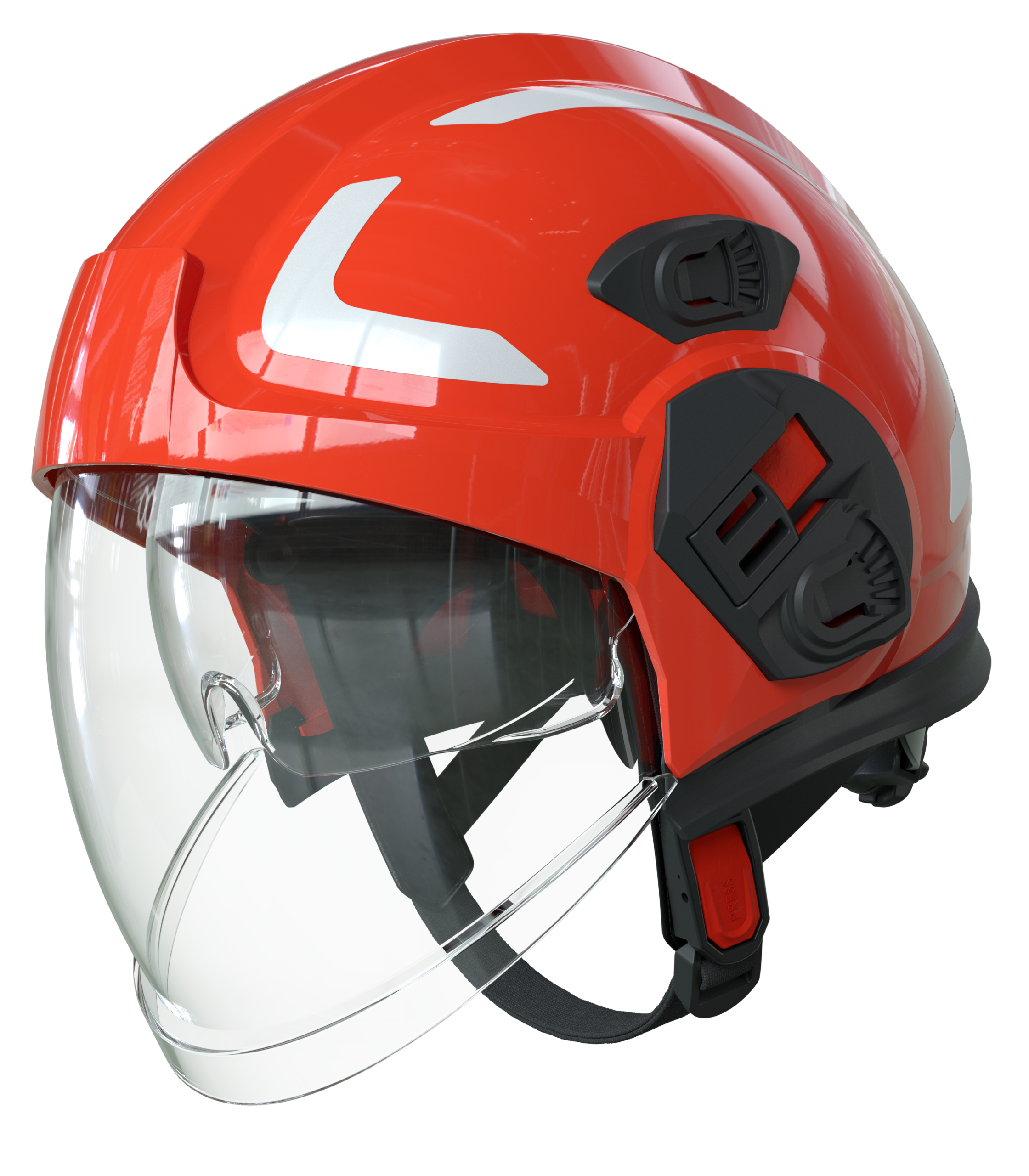 Nuevo diseño moderno y excelentes propiedades de protección. Relación óptima entre protección y comodidad con un amplio espectro de actualizaciones opcionales. La extinción de incendios estructurales nunca ha sido más segura. RENDIMIENTO Resistencia a temperaturas extremas (hasta 1.000°C en un flash de 10 segundos sobre llamas) Resistencia a la temperatura a largo plazo (prueba de calor radiante 14 kW/m2) Alta resistencia a impactos mecánicos. Clasificación de baja temperatura –30°C SEGURIDAD Capacidad de aislamiento eléctrico E2 y E3 Protección completa para la cabeza (incluidos cuello y cara). Tipo B3b Absorbedor de impactos interior para excelentes propiedades de absorción de impactos. Resistencia a la penetración de objetos afilados. Elementos reflectantes para una mejor visibilidad en condiciones de poca luz. Protector de nuca (disponible en fibra aluminizada, Nomex o lana para estilo Holland) Barboquejo de 3 puntos (cinta de aramida retardante de fuego, probado para prevenir irritación de la piel) Resistencia química (según EN 443) Resistencia a las llamas y al calor radiante. Resistencia a sólidos calientes y metales fundidos. CONFORT Ligero (1445±30 g (configuración básica sin accesorios) ó (1515±30 g (configuración básica con protector de nuca aluminizado)) Sistema de ajuste integrado Talla de casco única para cabezas de 52 a 64 cm. Amplia gama de accesorios y alto nivel de personalización MATERIALES DE ALTA TECNOLOGÍA Termoplástico reforzado con fibra de vidrio retardante de llama y resistente a altas temperaturas Visor integrado antirayaduras y antivaho (EN 14458) Gafas integradas antirayaduras y antivaho (EN 14458)