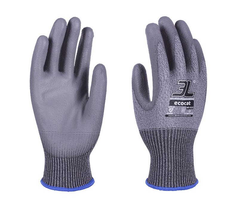 Ref: WX-023Guante de Poliamida/Poliéster/Fibra de vidrio recubierto de Poliuretano (PU)