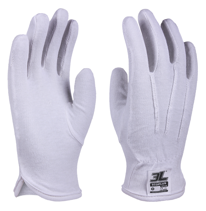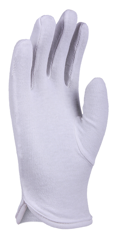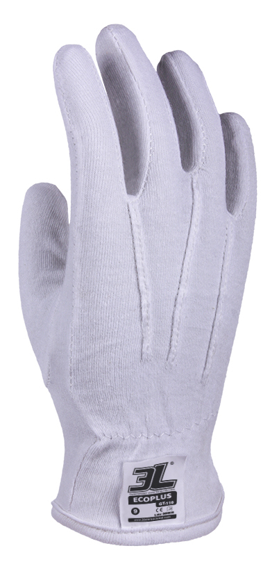Guante con tejido interlock de algodón 100%. Dorso fruncido elástico. Peso ligero.