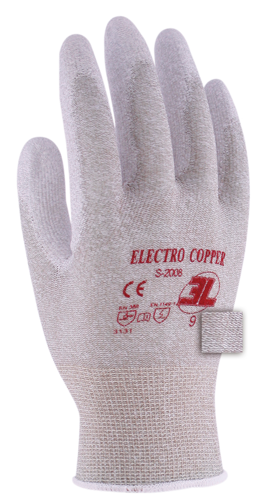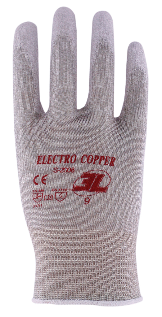 Ref: S-2008Guante antiestático sin costuras fibras de nylon-cobre con PU en palma.