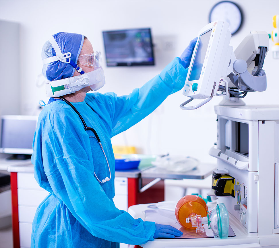 Respirador con batería de litio especialmente diseñado para su uso en atención sanitaria.