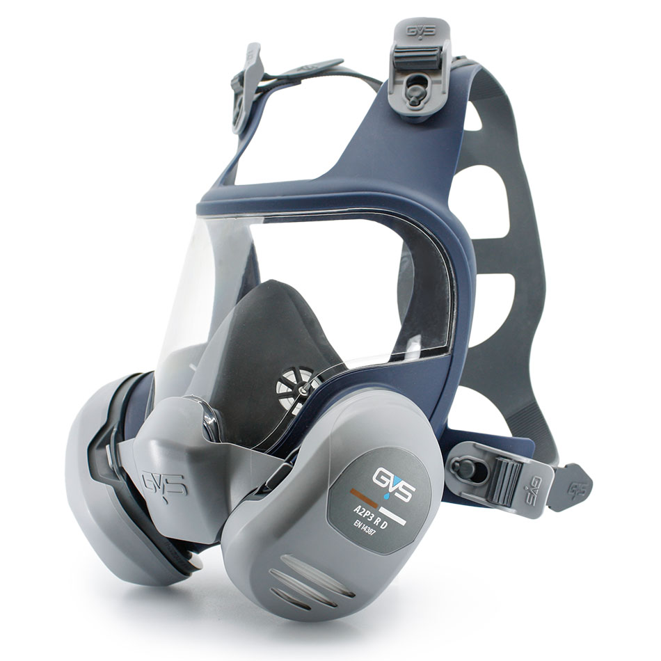 Características de seguridad: Gran válvula de exhalación de no-retorno para reducir el riesgo por fatiga del usuario. Diseño compacto, ligero y perfilado para ofrecer un amplio campo de visión. Visor con recubrimiento antiempañamiento y antirayado y protección frontal y lateral de impactos a 45 m/s. Arnés de 4 puntos en silicona para asegurar confort y ajuste durante el uso