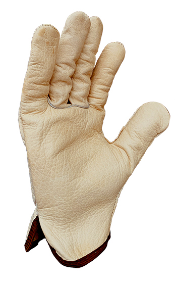 Guante tipo conductor fabricado en piel flor vacuno de color beige.