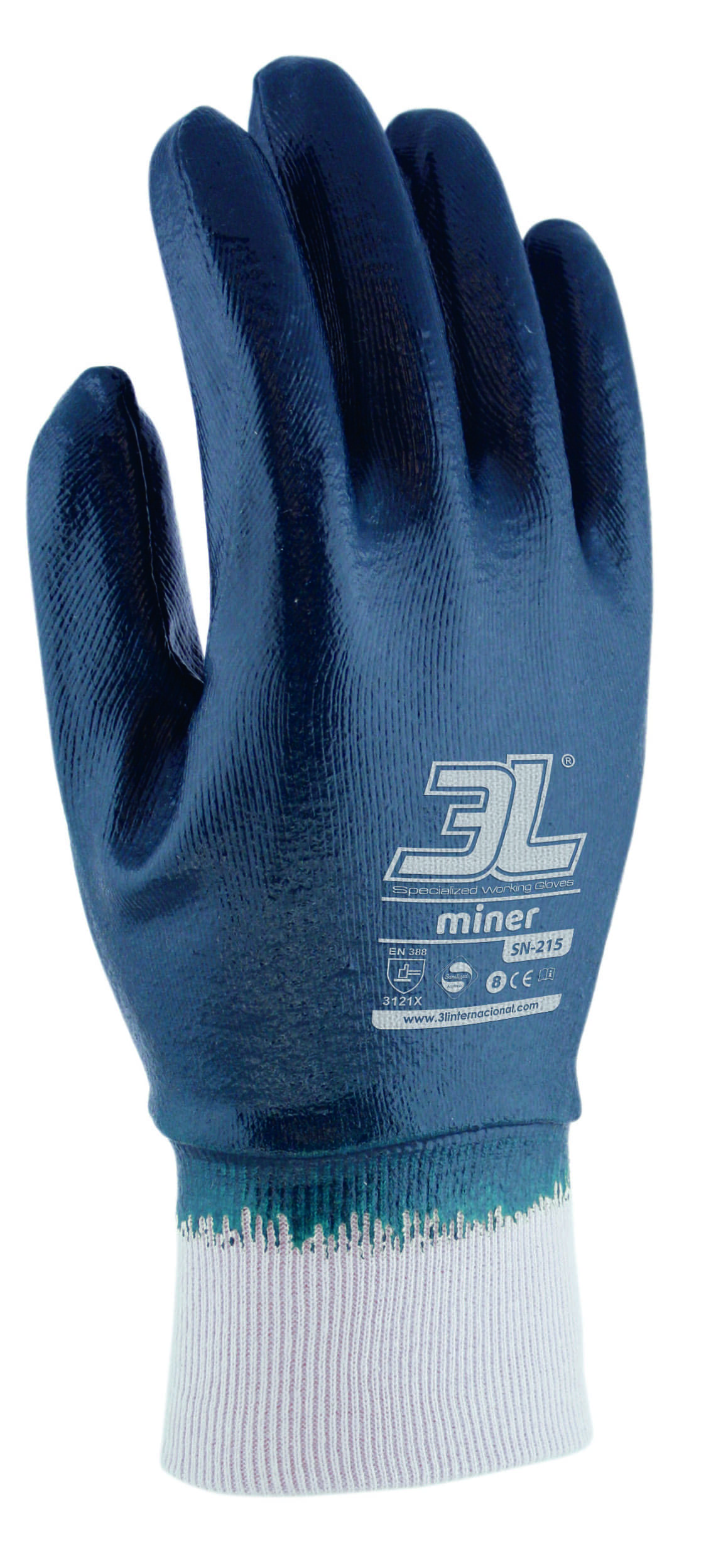 Recubrimiento de butadieno-acrilonitrilo (nitrilo) hasta la muñeca sobre algodón 100% tipo Interlock.