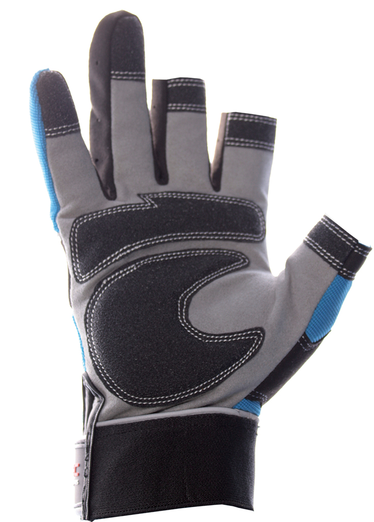 Ribetes reflectantes en el dorso y puño. Dorso de color azul de Spandex para un ajuste a medida