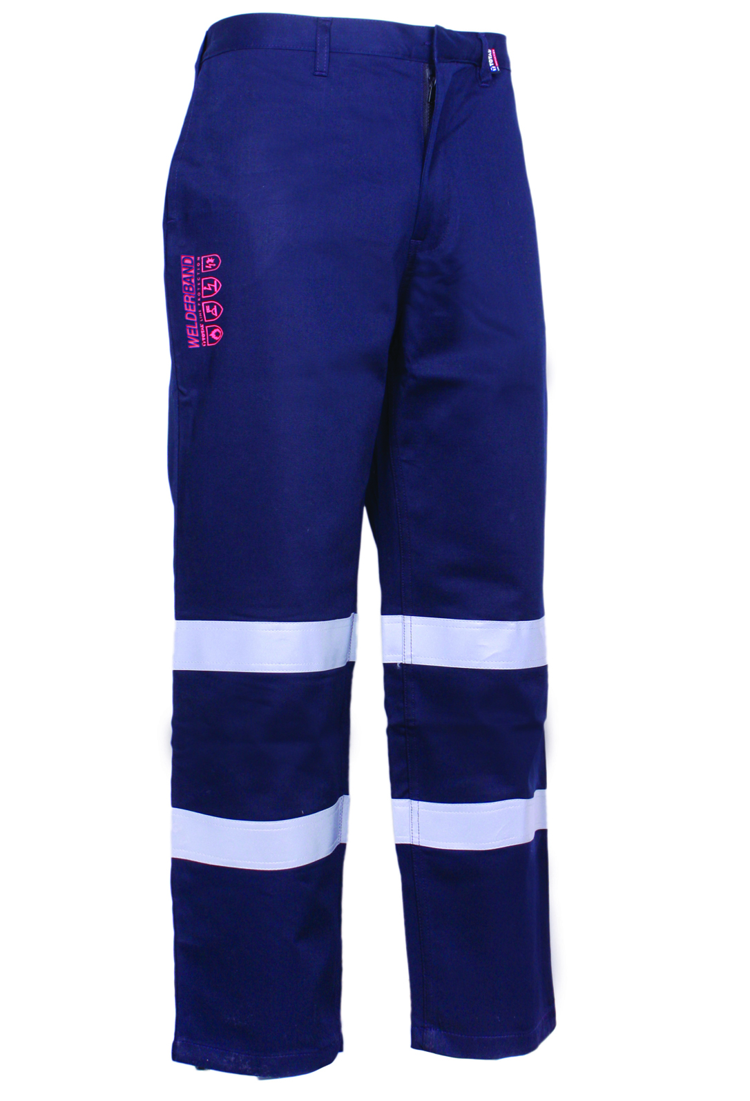 Pantalón de gran confort y diseño para soldadura o afines fabricado en Algodón 98% con tratamiento FR y 2% fibra antiestática. Dos bolsillos posteriores con tapeta apresillada y cierre por velcro. Dos bolsillos tipo francés. Elástico posterior en cintura. Cremallera FR. Bandas reflectantes en perneras. Gramaje 260 gr/m2. Color: azul marino.
